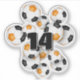 This fun soccer themed removable sticker can be personalized with the athlete's jersey number or monogram and features the image of a bunch of varied size orange, black and white soccer balls - by katz_d_zynes
