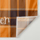 A Black and Orange Halloween Plaid Tartan Tapestry with a spooky black cat. Perfect Backdrop for Halloween Decor.
