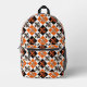 Orange Black White Chequered Fleur-de-lis Design Printed Backpack