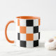 Orange Black White Chequered Pattern Design Mug