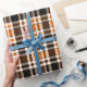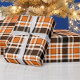 Orange Black White Flannel Tartan Pattern Design Wrapping Paper
