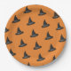 Orange Black Witch Hat Pattern Halloween Party Paper Plate
