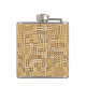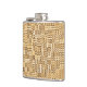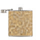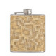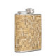 Graphic design, of Floral bloom, pattern-outlined in, grid panels, of Sienna-brown, orange, black, and white.