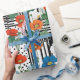 This eye-catching wrapping paper features vibrant orange, blue, and white flowers set against chic black-and-white stripes and playful polka dots—perfect for making your gifts pop with personality and charm.