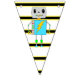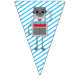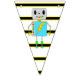 Cute robot themed black, orange, blue, yellow and red bunting flag banner for a robot themed boy's birthday party.