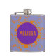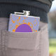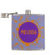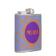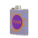 Customise this flask with your name or initials. Purple and orange circles squares pattern adorn your liquid gold stash.