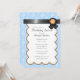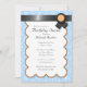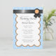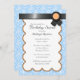 Beautiful party invitations with a light blue & white damask pattern and a black ribbon design with orange at the top.