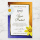 Make a lasting impression with this elegant and modern product label design featuring a cute daisy and coreopsis flower on an orange and blue glitter frame with a shimmery fine gold decor and a white background.
