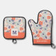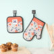 Orange & Blue Modern Flower Pattern Oven Mitt & Pot Holder Set