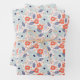 Orange & Blue Modern Flower Pattern Wrapping Paper Sheet