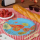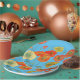 Orange Blue Poppy Flower Pattern Paper Party Plate