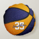This basketball team colours pillow for a boy or girl features the realistic image of a basketball that has alternating orange and blue recolored panels - personalise with player name in an "autograph" style font overlying the athlete's jersey number - by katz_d_zynes