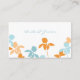 Wedding table place setting cards in elegant and modern light blue turquoise, white, and tangerine orange floral pattern, also available in many matching wedding products, contact us to request a colour change or custom design.
