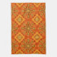 Orange Boho Abstract Flower Pattern Decorative Tea Towel