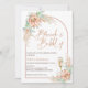 Faux rose gold modern calligraphy brunch and bubbly bridal shower invitation in a bohemian style featuring a lovely orange flowering cactus arrangement, pampas grass and a faux rose gold arch.