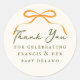 These warm neutral cream, simple, round stickers feature a message of thanks for party guests. A cute orange bow and easy to edit yet elevated text adds a refined touch to favors, bags, envelopes and more all while coordinating with the Dainty Wildflowers and Bow shower suite.