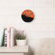 Orange Brick Wall with Black Peeling Paint Round Clock