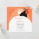 Trendy bridal shower invitations, with an illustration of a bride and groom on a tangerine tango and orange swirl background. Get the matching postage, favour labels, and mailing labels. Contact us for custom colours to match your wedding colours - PMCustomWeddings@hotmail.com