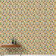 This funky retro style mid-century wallpaper features circles of orange, brown, gold, white, and teal blue. This is sure to be an eye catcher on your wall!