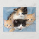 This cat-themed postcard design features a digital colour photograph of domestic (American) shorthair (DSH) orange tabby, calico, and black and white shelter kittens from Frederick County Animal Control. It makes a unique gift for cat lovers!