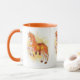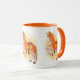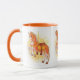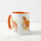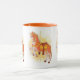 I have loved carousels since I was a child. The beautiful designs of the animals and music from carousels set up at fairs and parks hold a special place in my heart. This inspired me to draw some carousel horses of my own, then colour them with acrylic ink. The watercolor of an orange horse decorated in gold featured on this mug is one of the results.