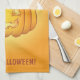 Orange Cartoon Pumpkin And Happy Halloween Text Tea Towel
