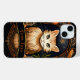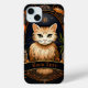 Orange long-haired cat in a vintage art nouveau style with orange and green floral accents on a black background. Customisable with your text, name, initials, or whatever you choose.