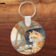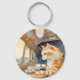 Orange Cat Drinking Tea in a vintage train, surreal art painting for cat lovers.
