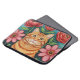 Laptop sleeve with a cute orange cat with folk art red and pink flowers.
