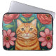Orange Cat Folk Art Flowers Laptop Sleeve