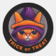 Orange Cat Purple Witch Hat Trick Treat Halloween Classic Round Sticker