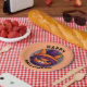 Orange Cat with Purple Witch Hat Happy Halloween Paper Plates. A drawing of a cute orange cat with a purple and orange hat.