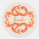 Elegant and sophisticated Chic Damask Stickers featuring a soft beige background and a stylish damask flourish embellishment in orange. This modern design is easy to customise with your own text. Click "Customise It" to find more personalisation options.
