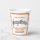 This modern orange high school choir party paper cup features the student and chorale name under the musical staff with treble clef and music notes. Customise for a singer, choir teacher, or director for great graduation or celebration decor.