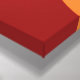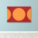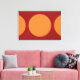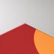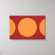 This bold geometric pattern features a large orange dot in the centre and two orange half circles on the edges of a red background.