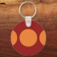 This bold geometric pattern features a large orange dot in the centre and two orange half circles on the edges of a red background.