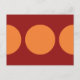 This bold geometric pattern features a large orange dot in the centre and two orange half circles on the edges of a red background.