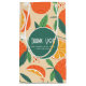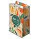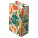 A party thank you gift bag with a retro vibe. A pattern composed of sliced oranges, whole oranges, green leaves and white blossoms.