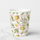 Citrus and floral arrangements paper cup with white and pink striped background.