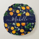 Orange Citrus Summer Floral Botanical Pattern Round Cushion