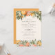 Orange citrus blossom watercolor floral and foliage wedding invitation. Beautiful handprinted floral watercolors and modern script text. Modern on trend rust colour.