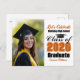 Customize these orange high school Class of 2026 graduate photo party invitation postcard for a high school or college graduation. Cool varsity letters for the year on great custom invite postcards for seniors. Classic typography next to your student photograph.
