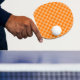 Orange combination chequerboard ping pong paddle. Images Copyright © Shirley Taylor. All Rights Reserved.