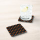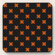 Orange cross stitches on black coaster