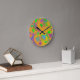 A pile of brightly coloured cupcakes decorated with marshmallows, chocolate stars, hearts, jelly sweets. sprinkles and glitter - ready to eat! Wall clock with an orange, blue, purple and green customisable design for you to personalise with your own text, pictures and ideas. Other style options available. An original photograph stylised using digital techniques by Jess Perry.