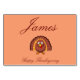 Orange custom Thanksgiving place cards with turkey picture and customisable text.