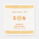 Orange Cute Here Comes The Son Baby Shower Napkin