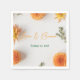Elevate your wedding table with these elegant paper napkins featuring vibrant orange dahlias and warm summer hues. Designed to complement a sunny, flower-filled celebration, they bring charm and color to your cocktail hour, dinner, or dessert table. A stylish detail for a beautifully cohesive event.