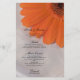 The pretty Orange Daisy on White Satin Wedding Menu can be personalised with the names of the bride and groom, venue location and details of the meal that you will serve at your bridal shower luncheon, marriage reception dinner or post wedding brunch. This elegant custom flowery wedding menu features a close up floral photograph of an orange gerber daisy flower blossom with a white satin background.