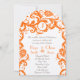 Orange Damask Coral Monogram Wedding Invitation